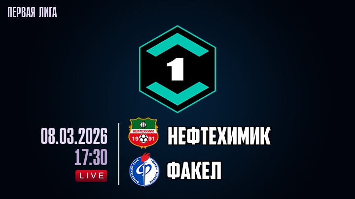 8 марта 2026 года, мы предлагаем посмотреть онлайн трансляцию футбольного матча между футбольным клубом Нефтехимик и футбольным клубом Факел, проходящего в рамках Первой лиги.