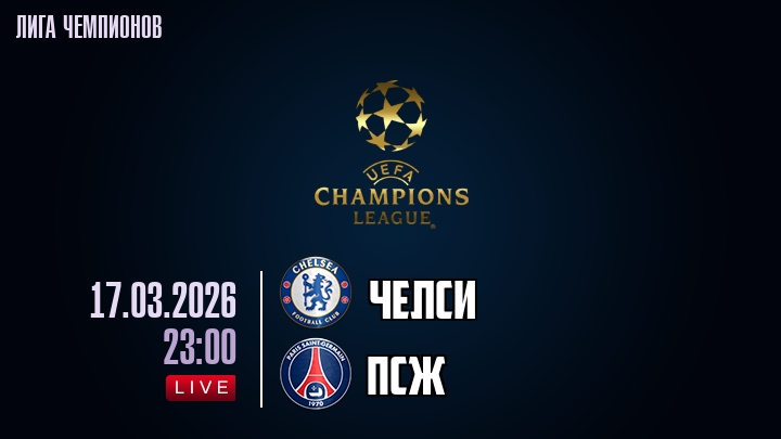 17 марта 2026 года, мы предлагаем посмотреть онлайн трансляцию футбольного матча между футбольным клубом Челси и футбольным клубом ПСЖ, проходящего в рамках Лиги Чемпионов.