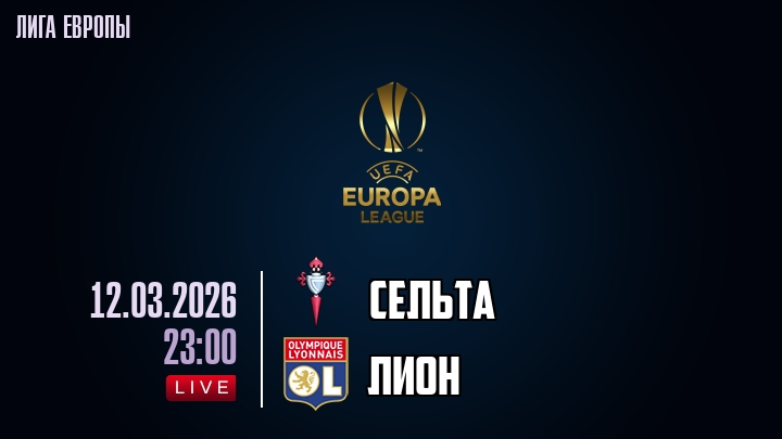 12 марта 2026 года, мы предлагаем посмотреть онлайн трансляцию футбольного матча между футбольным клубом Сельта и футбольным клубом Лион, проходящего в рамках Лиги Европы.