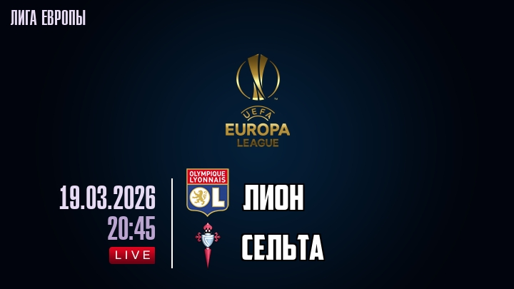 19 марта 2026 года, мы предлагаем посмотреть онлайн трансляцию футбольного матча между футбольным клубом Лион и футбольным клубом Сельта, проходящего в рамках Лиги Европы.