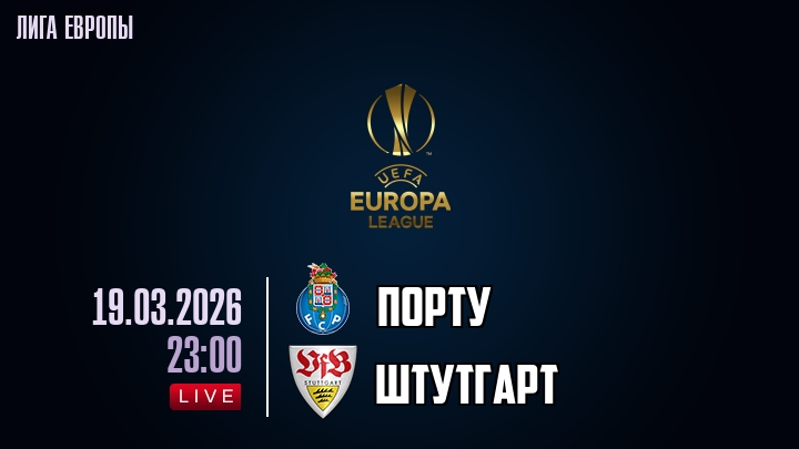 19 марта 2026 года, мы предлагаем посмотреть онлайн трансляцию футбольного матча между футбольным клубом Порту и футбольным клубом Штутгарт, проходящего в рамках Лиги Европы.