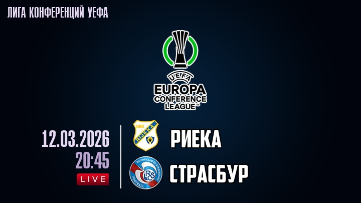 12 марта 2026 года, мы предлагаем посмотреть онлайн трансляцию футбольного матча между футбольным клубом Риека и футбольным клубом Страсбур, проходящего в рамках Лиги конференций УЕФА.