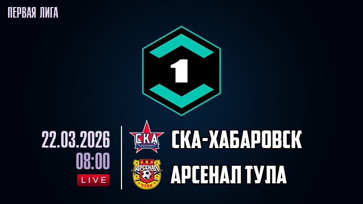 22 марта 2026 года, мы предлагаем посмотреть онлайн трансляцию футбольного матча между футбольным клубом СКА-Хабаровск и футбольным клубом Арсенал Тула, проходящего в рамках Первой лиги.