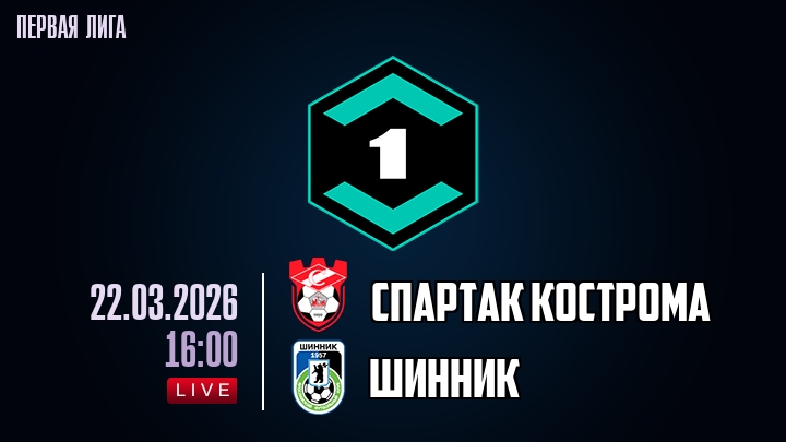 22 марта 2026 года, мы предлагаем посмотреть онлайн трансляцию футбольного матча между футбольным клубом Спартак Кострома и футбольным клубом Шинник, проходящего в рамках Первой лиги.