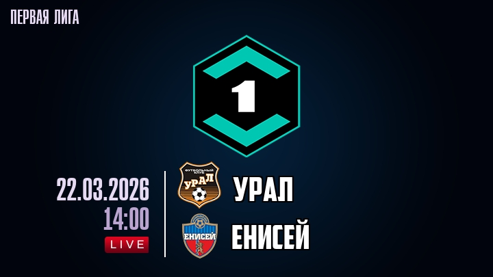 22 марта 2026 года, мы предлагаем посмотреть онлайн трансляцию футбольного матча между футбольным клубом Урал и футбольным клубом Енисей, проходящего в рамках Первой лиги.