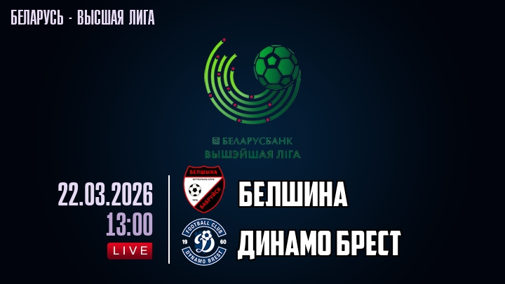 22 марта 2026 года, мы предлагаем посмотреть онлайн трансляцию футбольного матча между футбольным клубом Белшина и футбольным клубом Динамо Брест, проходящего в рамках Высшей лиги Беларуси.