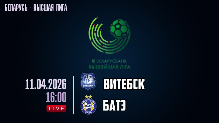 11 апреля 2026 года, мы предлагаем посмотреть онлайн трансляцию футбольного матча между футбольным клубом Витебск и футбольным клубом БАТЭ, проходящего в рамках Высшей лиги Беларуси.