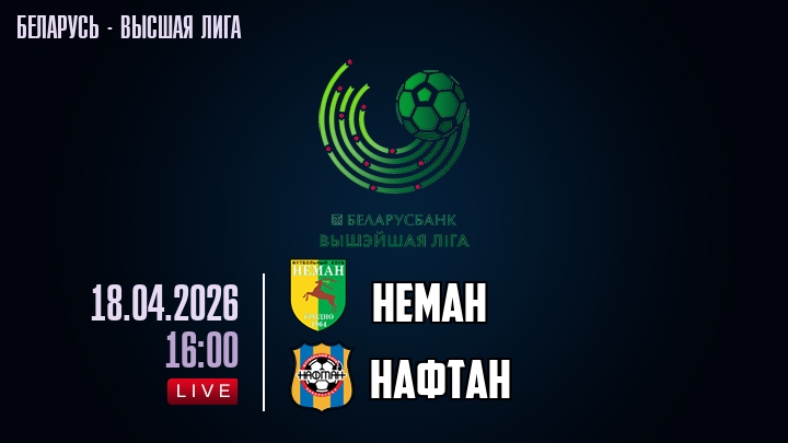 18 апреля 2026 года, мы предлагаем посмотреть онлайн трансляцию футбольного матча между футбольным клубом Неман и футбольным клубом Нафтан, проходящего в рамках Высшей лиги Беларуси.