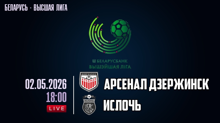2 мая 2026 года, мы предлагаем посмотреть онлайн трансляцию футбольного матча между футбольным клубом Арсенал Дзержинск и футбольным клубом Ислочь, проходящего в рамках Высшей лиги Беларуси.