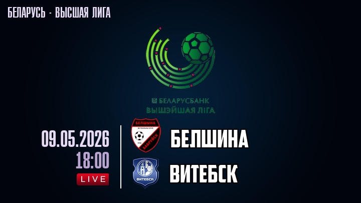 9 мая 2026 года, мы предлагаем посмотреть онлайн трансляцию футбольного матча между футбольным клубом Белшина и футбольным клубом Витебск, проходящего в рамках Высшей лиги Беларуси.
