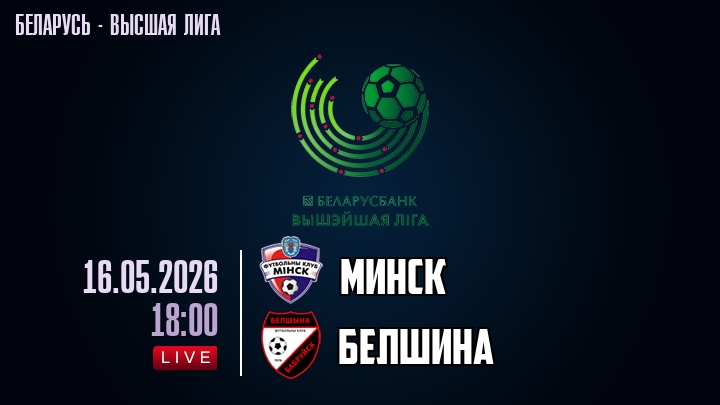 16 мая 2026 года, мы предлагаем посмотреть онлайн трансляцию футбольного матча между футбольным клубом Минск и футбольным клубом Белшина, проходящего в рамках Высшей лиги Беларуси.