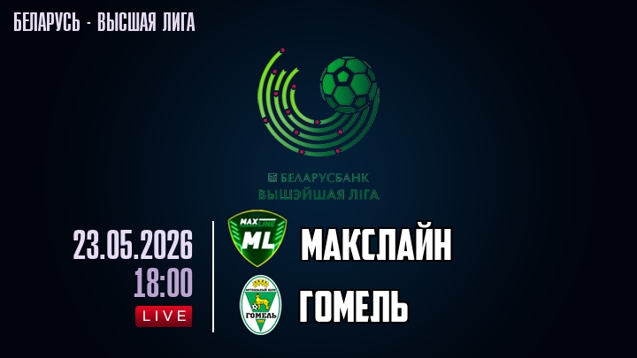 23 мая 2026 года, мы предлагаем посмотреть онлайн трансляцию футбольного матча между футбольным клубом Макслайн и футбольным клубом Гомель, проходящего в рамках Высшей лиги Беларуси.