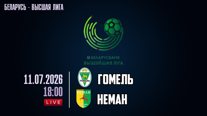 11 июля 2026 года, мы предлагаем посмотреть онлайн трансляцию футбольного матча между футбольным клубом Гомель и футбольным клубом Неман, проходящего в рамках Высшей лиги Беларуси.