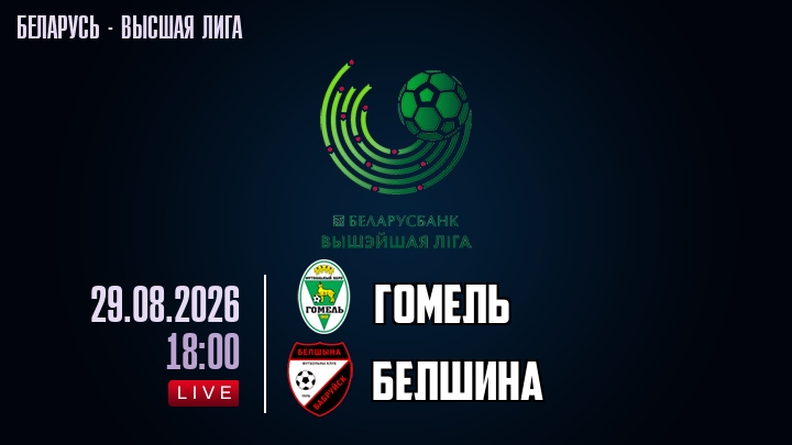 29 августа 2026 года, мы предлагаем посмотреть онлайн трансляцию футбольного матча между футбольным клубом Гомель и футбольным клубом Белшина, проходящего в рамках Высшей лиги Беларуси.