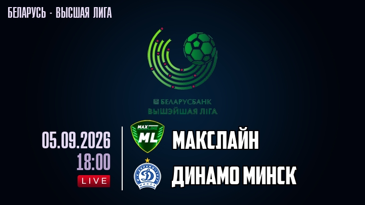 5 сентября 2026 года, мы предлагаем посмотреть онлайн трансляцию футбольного матча между футбольным клубом Макслайн и футбольным клубом Динамо Минск, проходящего в рамках Высшей лиги Беларуси.