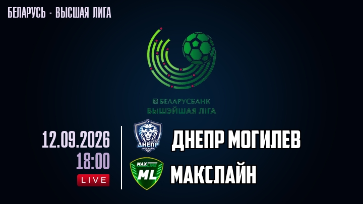12 сентября 2026 года, мы предлагаем посмотреть онлайн трансляцию футбольного матча между футбольным клубом Днепр Могилев и футбольным клубом Макслайн, проходящего в рамках Высшей лиги Беларуси.