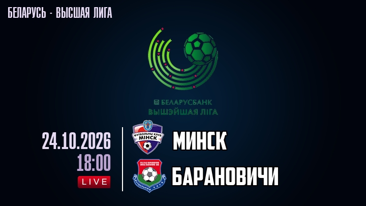 24 октября 2026 года, мы предлагаем посмотреть онлайн трансляцию футбольного матча между футбольным клубом Минск и футбольным клубом Барановичи, проходящего в рамках Высшей лиги Беларуси.