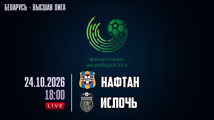 24 октября 2026 года, мы предлагаем посмотреть онлайн трансляцию футбольного матча между футбольным клубом Нафтан и футбольным клубом Ислочь, проходящего в рамках Высшей лиги Беларуси.