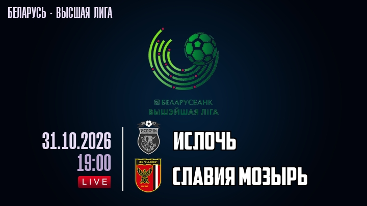 31 октября 2026 года, мы предлагаем посмотреть онлайн трансляцию футбольного матча между футбольным клубом Ислочь и футбольным клубом Славия Мозырь, проходящего в рамках Высшей лиги Беларуси.
