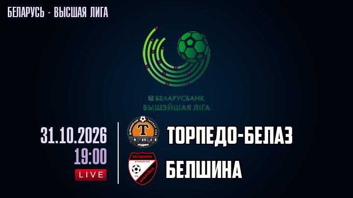 31 октября 2026 года, мы предлагаем посмотреть онлайн трансляцию футбольного матча между футбольным клубом Торпедо-БелАЗ и футбольным клубом Белшина, проходящего в рамках Высшей лиги Беларуси.