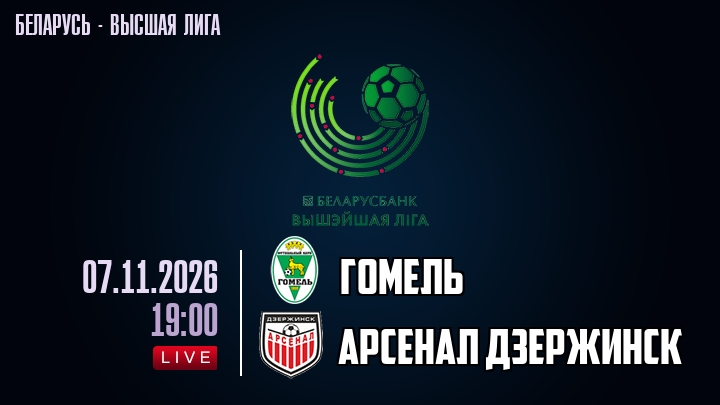 7 ноября 2026 года, мы предлагаем посмотреть онлайн трансляцию футбольного матча между футбольным клубом Гомель и футбольным клубом Арсенал Дзержинск, проходящего в рамках Высшей лиги Беларуси.