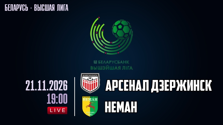 21 ноября 2026 года, мы предлагаем посмотреть онлайн трансляцию футбольного матча между футбольным клубом Арсенал Дзержинск и футбольным клубом Неман, проходящего в рамках Высшей лиги Беларуси.