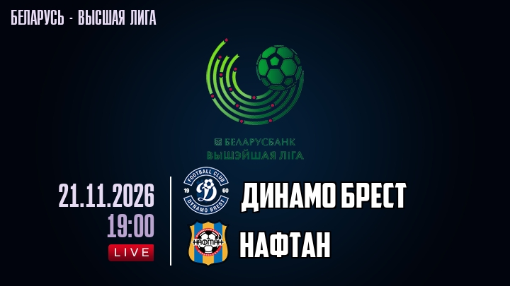 21 ноября 2026 года, мы предлагаем посмотреть онлайн трансляцию футбольного матча между футбольным клубом Динамо Брест и футбольным клубом Нафтан, проходящего в рамках Высшей лиги Беларуси.
