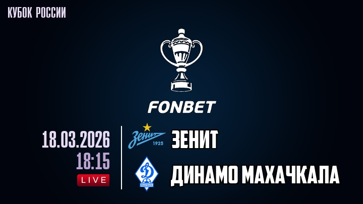 Сегодня, 18 марта 2026 года, мы предлагаем посмотреть онлайн трансляцию футбольного матча между футбольным клубом Зенит и футбольным клубом Динамо Махачкала, проходящего в рамках Кубка России.