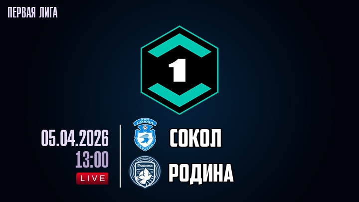 5 апреля 2026 года, мы предлагаем посмотреть онлайн трансляцию футбольного матча между футбольным клубом Сокол и футбольным клубом Родина, проходящего в рамках Первой лиги.