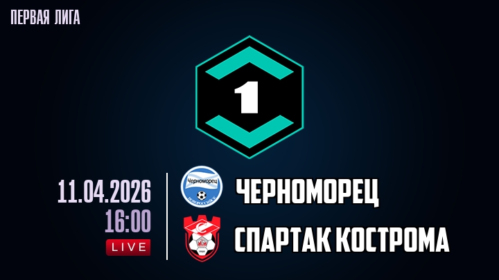 11 апреля 2026 года, мы предлагаем посмотреть онлайн трансляцию футбольного матча между футбольным клубом Черноморец и футбольным клубом Спартак Кострома, проходящего в рамках Первой лиги.