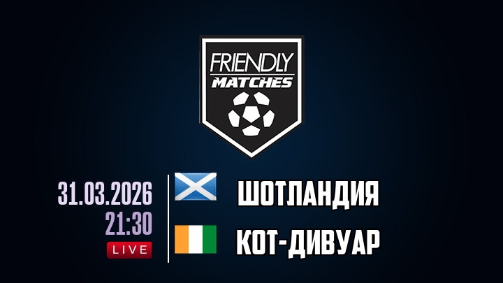 31 марта 2026 года, мы предлагаем посмотреть онлайн трансляцию футбольного матча между футбольным клубом Шотландия и футбольным клубом Кот-дИвуар, проходящего в рамках .