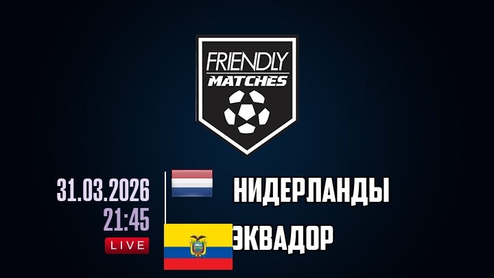 31 марта 2026 года, мы предлагаем посмотреть онлайн трансляцию футбольного матча между сборной Нидерландов и сборной Эквадора, проходящего в рамках .