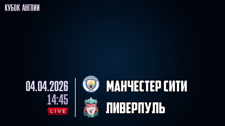 4 апреля 2026 года, мы предлагаем посмотреть онлайн трансляцию футбольного матча между футбольным клубом Манчестер Сити и футбольным клубом Ливерпуль, проходящего в рамках Кубка Англии.