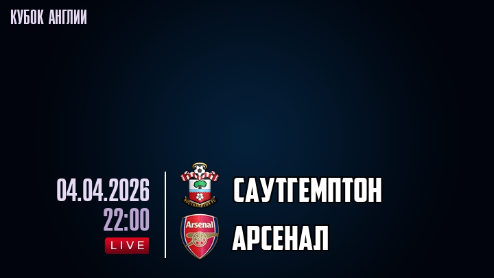 4 апреля 2026 года, мы предлагаем посмотреть онлайн трансляцию футбольного матча между футбольным клубом Саутгемптон и футбольным клубом Арсенал, проходящего в рамках Кубка Англии.