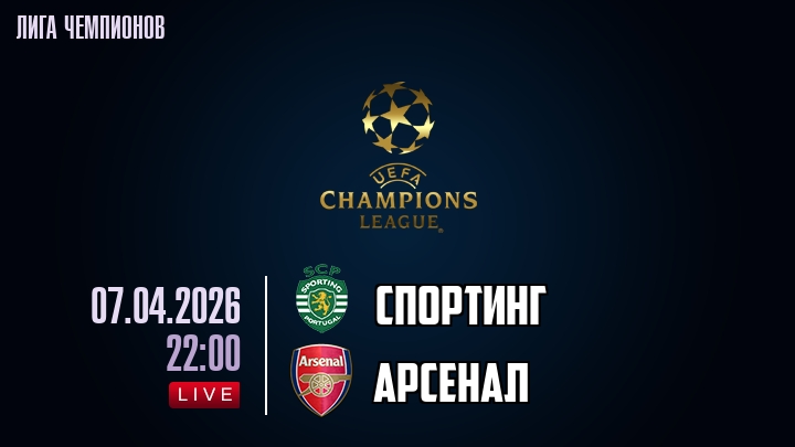 7 апреля 2026 года, мы предлагаем посмотреть онлайн трансляцию футбольного матча между футбольным клубом Спортинг и футбольным клубом Арсенал, проходящего в рамках Лиги Чемпионов.
