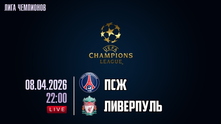 8 апреля 2026 года, мы предлагаем посмотреть онлайн трансляцию футбольного матча между футбольным клубом ПСЖ и футбольным клубом Ливерпуль, проходящего в рамках Лиги Чемпионов.