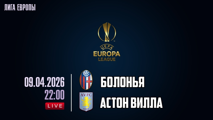 9 апреля 2026 года, мы предлагаем посмотреть онлайн трансляцию футбольного матча между футбольным клубом Болонья и футбольным клубом Астон Вилла, проходящего в рамках Лиги Европы.