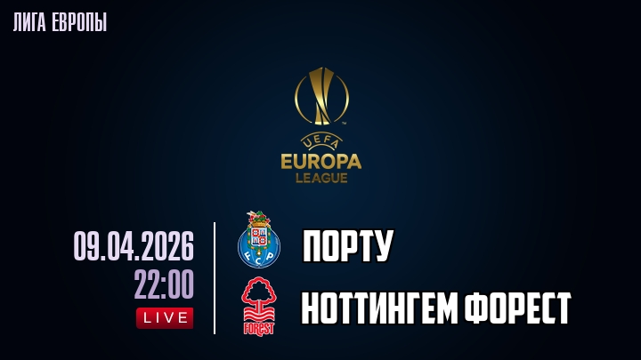 9 апреля 2026 года, мы предлагаем посмотреть онлайн трансляцию футбольного матча между футбольным клубом Порту и футбольным клубом Ноттингем Форест, проходящего в рамках Лиги Европы.
