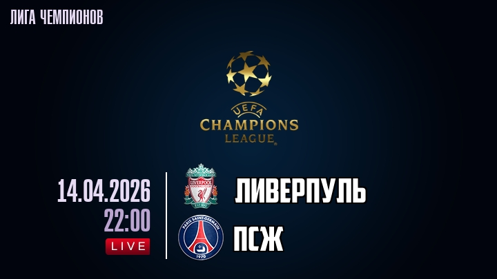 14 апреля 2026 года, мы предлагаем посмотреть онлайн трансляцию футбольного матча между футбольным клубом Ливерпуль и футбольным клубом ПСЖ, проходящего в рамках Лиги Чемпионов.