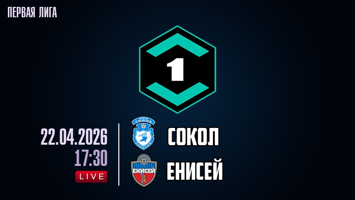 22 апреля 2026 года, мы предлагаем посмотреть онлайн трансляцию футбольного матча между футбольным клубом Сокол и футбольным клубом Енисей, проходящего в рамках Первой лиги.