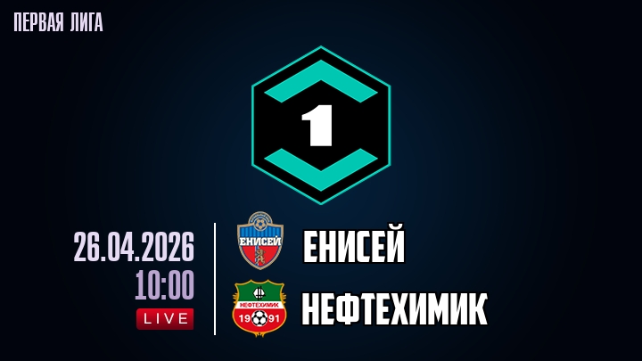 26 апреля 2026 года, мы предлагаем посмотреть онлайн трансляцию футбольного матча между футбольным клубом Енисей и футбольным клубом Нефтехимик, проходящего в рамках Первой лиги.