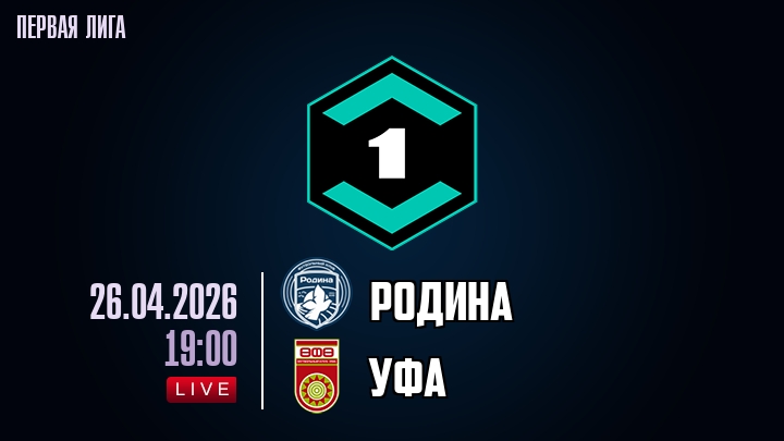 26 апреля 2026 года, мы предлагаем посмотреть онлайн трансляцию футбольного матча между футбольным клубом Родина и футбольным клубом Уфа, проходящего в рамках Первой лиги.