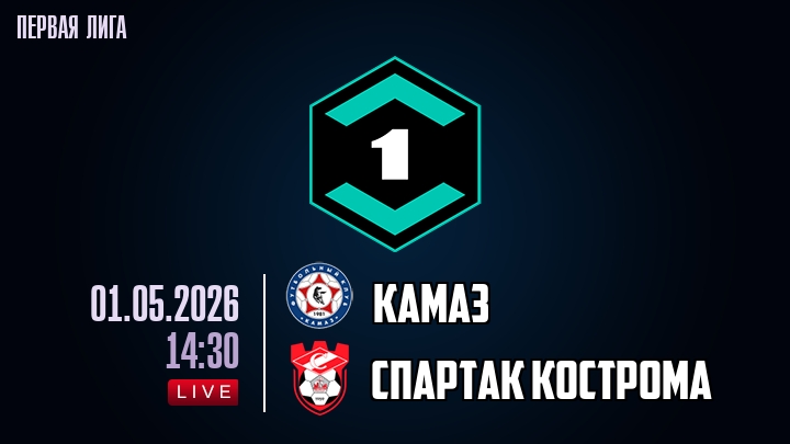 1 мая 2026 года, мы предлагаем посмотреть онлайн трансляцию футбольного матча между футбольным клубом КАМАЗ и футбольным клубом Спартак Кострома, проходящего в рамках Первой лиги.