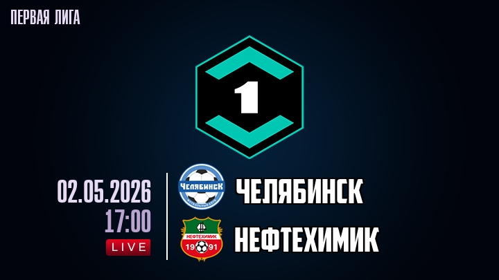 2 мая 2026 года, мы предлагаем посмотреть онлайн трансляцию футбольного матча между футбольным клубом Челябинск и футбольным клубом Нефтехимик, проходящего в рамках Первой лиги.