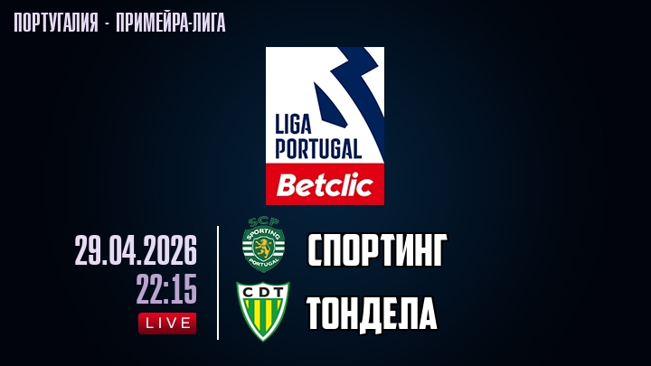 29 апреля 2026 года, мы предлагаем посмотреть онлайн трансляцию футбольного матча между футбольным клубом Спортинг и футбольным клубом Тондела, проходящего в рамках Примейра-лиги Португалии.