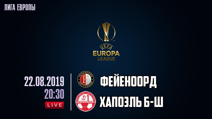В 20-30 «Фейеноорд» проведет домашнюю встречу с клубом «Хапоэль Б-Ш». В прошлой встрече между командой Хапоэль Б-Ш и командой Фейеноорд, которая состоялась 29 августа 2019 года - победу со счетом 3:0 одержала команда Фейеноорд.