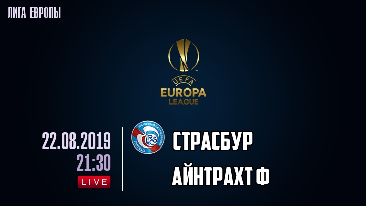 22 августа 2019 года, мы предлагаем посмотреть онлайн трансляцию футбольного матча между футбольным клубом Страсбур и футбольным клубом Айнтрахт Ф, проходящего в рамках Лиги Европы.