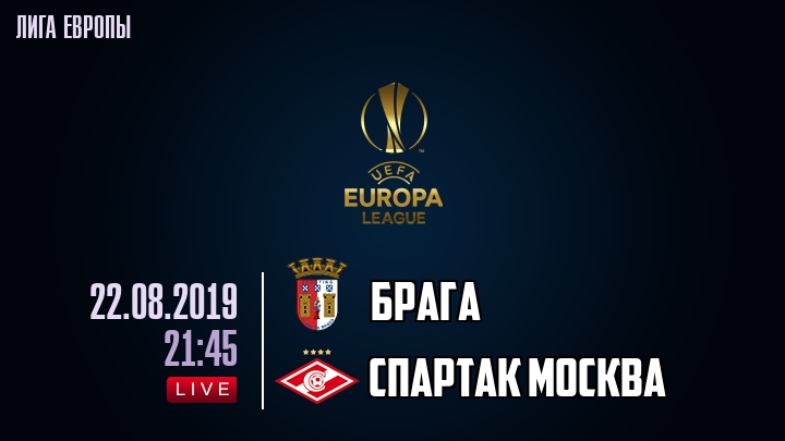 22 августа 2019 года, мы предлагаем посмотреть онлайн трансляцию футбольного матча между футбольным клубом Брага и футбольным клубом Спартак Москва, проходящего в рамках Лиги Европы.