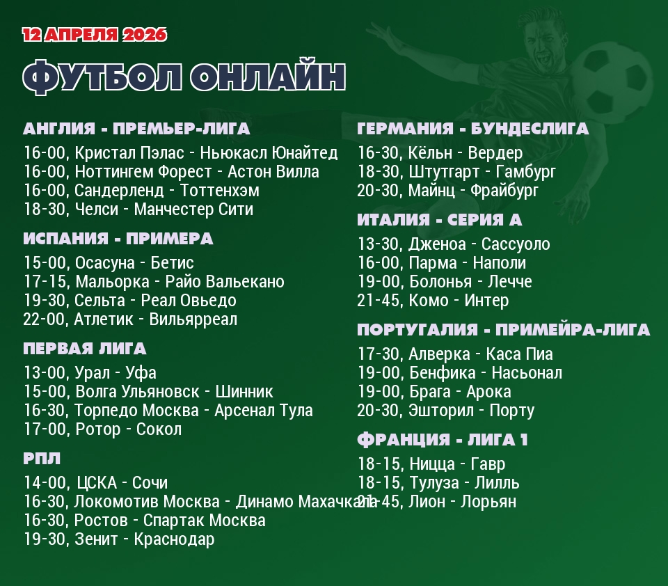 в 16-00 «Ноттингем Форест» проведет домашний матч с ФК «Астон Вилла». В прошлой встрече между командой Ноттингем Форест и командой Астон Вилла, которая состоялась 12 апреля 2026 года - счет оказался ничейным 1:1