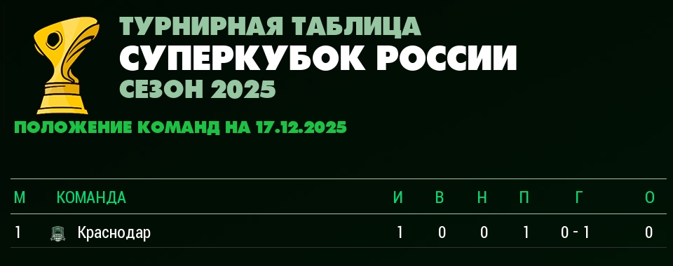 Сегодня, 17 декабря, и на ближайшие дни трансляций Cуперкубка России не запланировано...